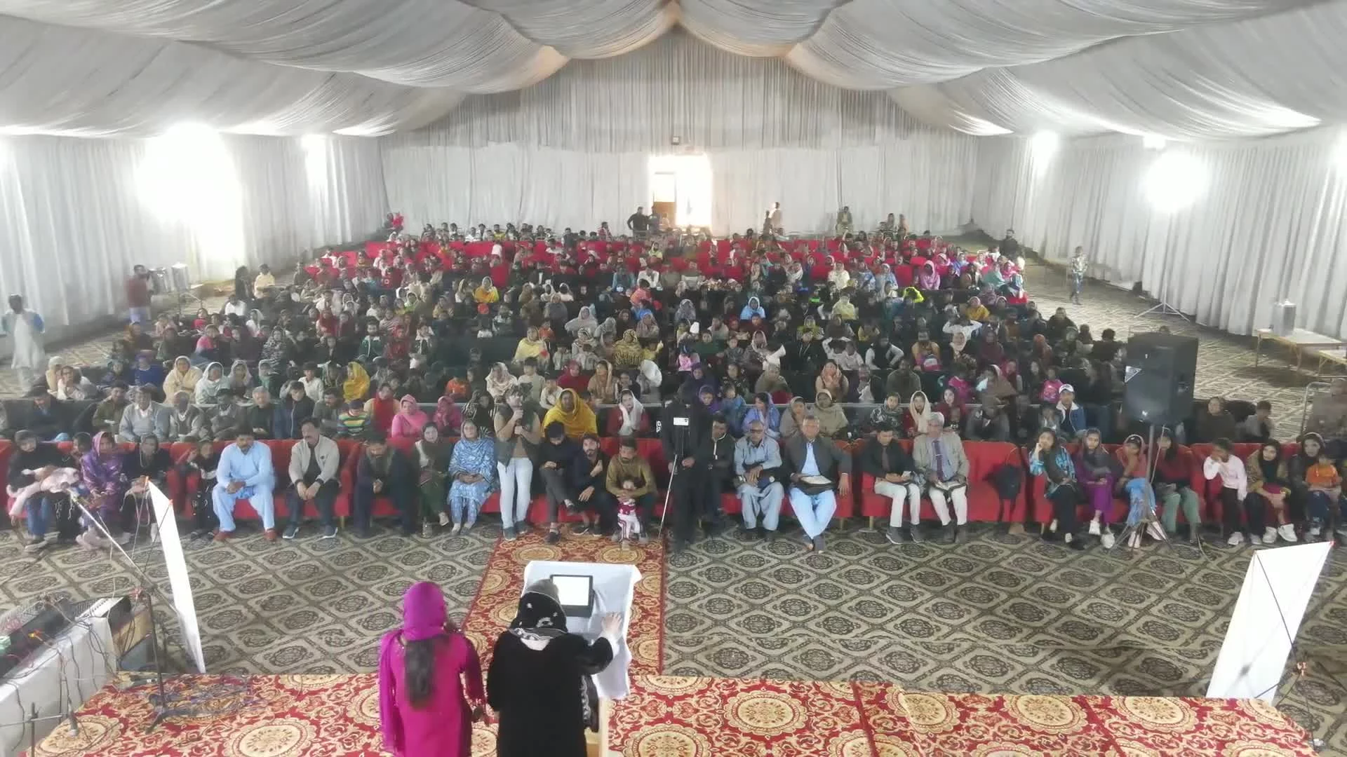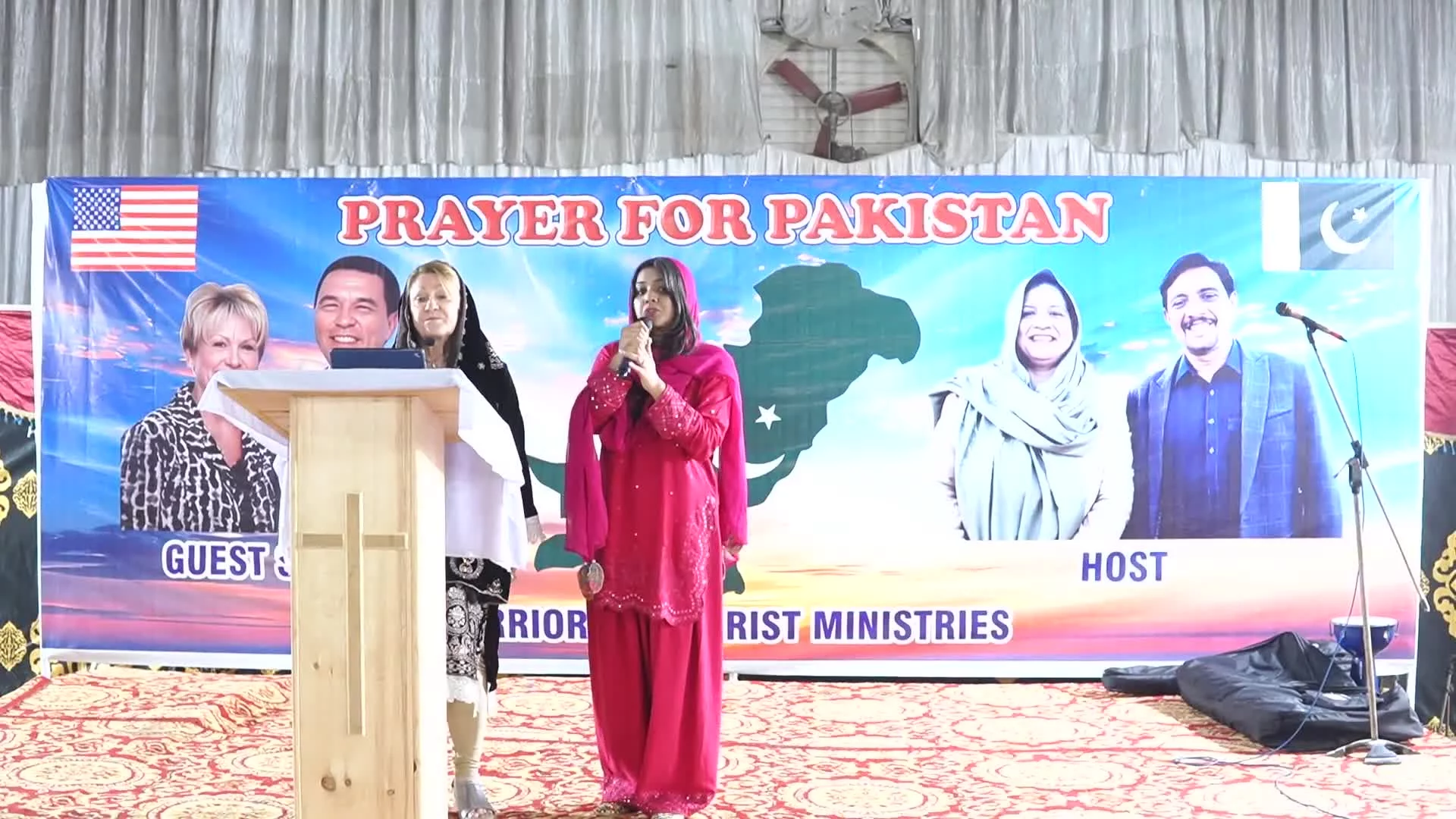 Dr. Patricia stood before the gathered multitudes, a sea of expectant faces stretching beyond the lights of the marquee. Beside her stood Horab, faithfully carrying each word across languages so that every heart could receive the message. Together, they moved in beautiful unity — voice and echo, message and interpretation — releasing hope, healing, and the truth of the Kingdom.